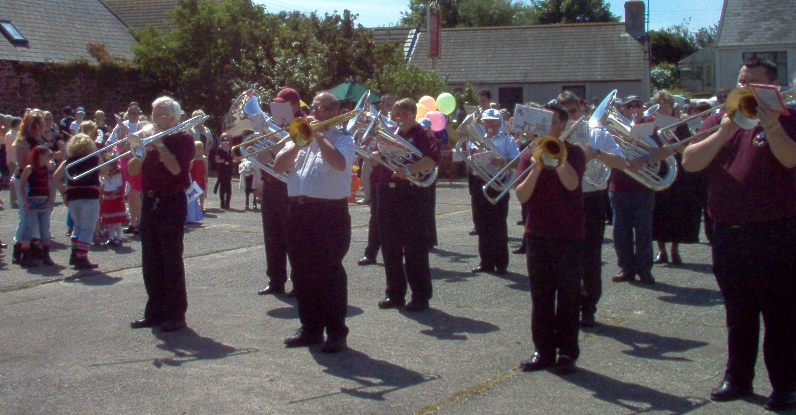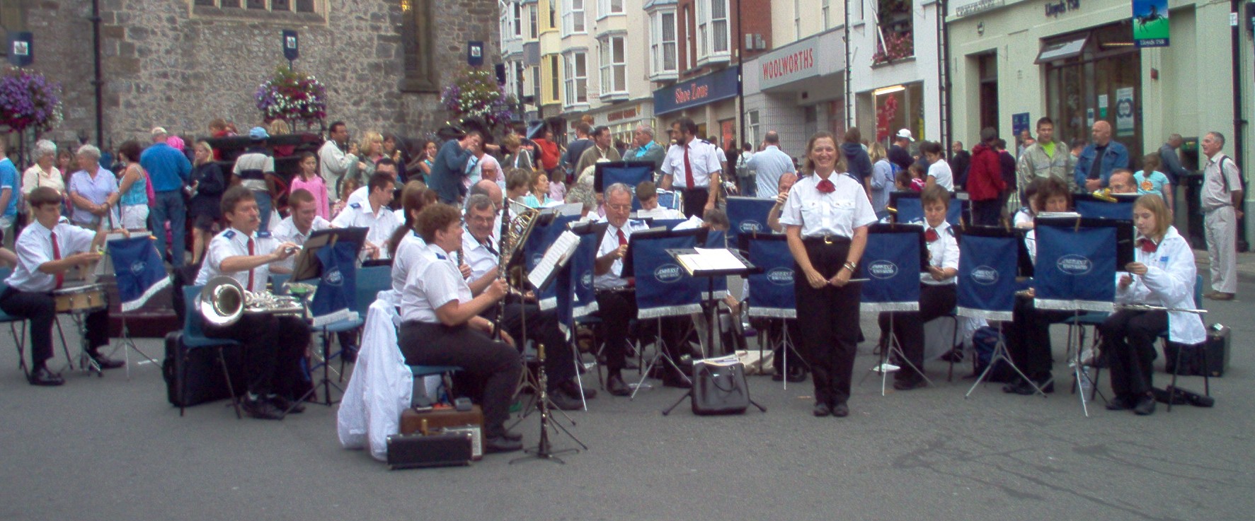In July 2004, the band traveled to Wales, where we were hosted by the Milford Haven Town Band. We played several concerts in Milford Haven and surrounding towns in Pembrokeshire, and marched in two parades. For more photos of our trip, see the Wales 2004 Photo Gallery. |